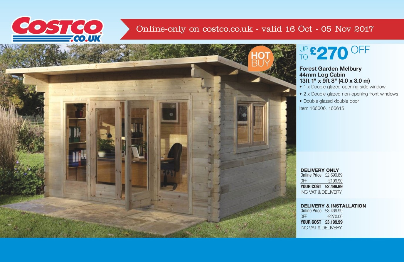 Costco Uk Forest Garden Alderley Log Cabin 13 1 X 9 8ft 3 9 X