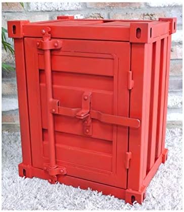 Metal Industrial Shipping Container Style Red Bedside Cabinet